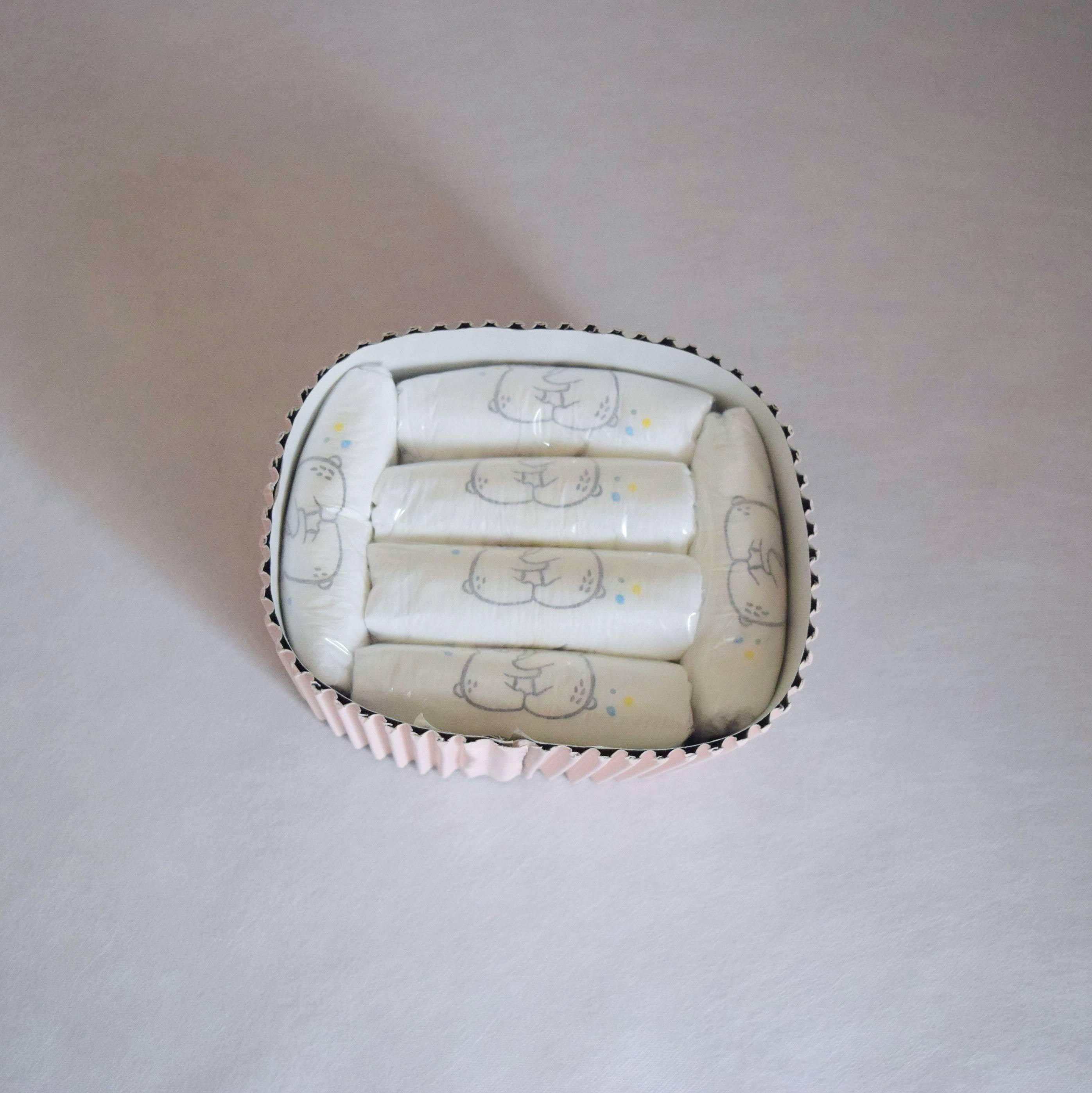 ※おむつケーキはデザインが手作業で行われているため、写真と実物に若干の違いがある場合がございます。