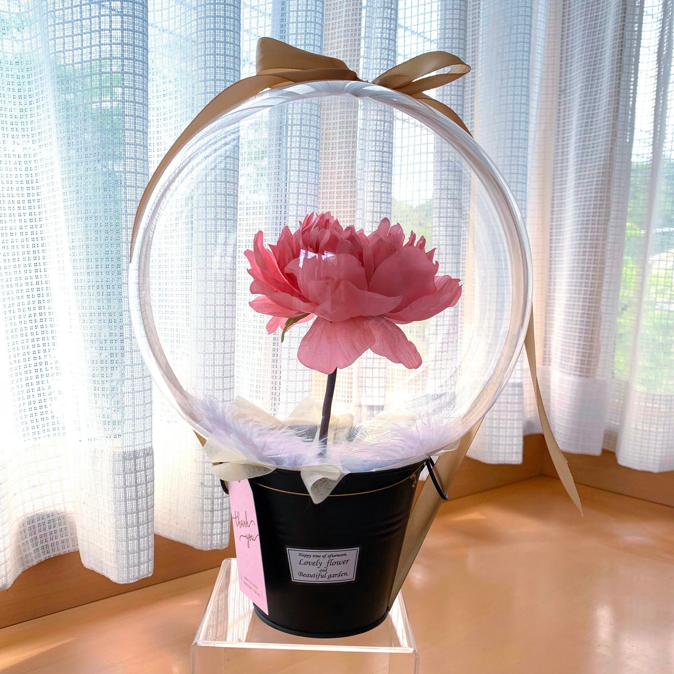 ふわっと大きなピンクピオニー(芍薬)のバルーンフラワーは、鮮やかなピンクの花びらが印象的なアートフラワー。オフィスやリビングルーム、パーティーなど、さまざまな場面で活躍します。芍薬の花言葉は「富と名声」や「幸福が訪れる」など、豊かな意味を持つ花です。本来1年に1度、限られた期間しか出会えないお花ですが、こちらはアーティフィシャルフラワー(高品質造花)でできておりますので、手入れや水やりが不要。長期間、空間に華やかさをプラスしお部屋を飾ります。